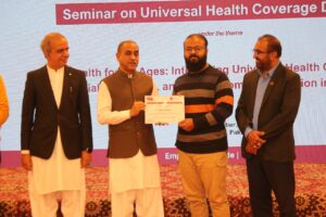 In recognition of their active participation and contributions, all participants of the seminar were presented with shields and participation certificates, symbolising appreciation for their engagement and commitment to advancing inclusive health and social protection policies in Pakistan.